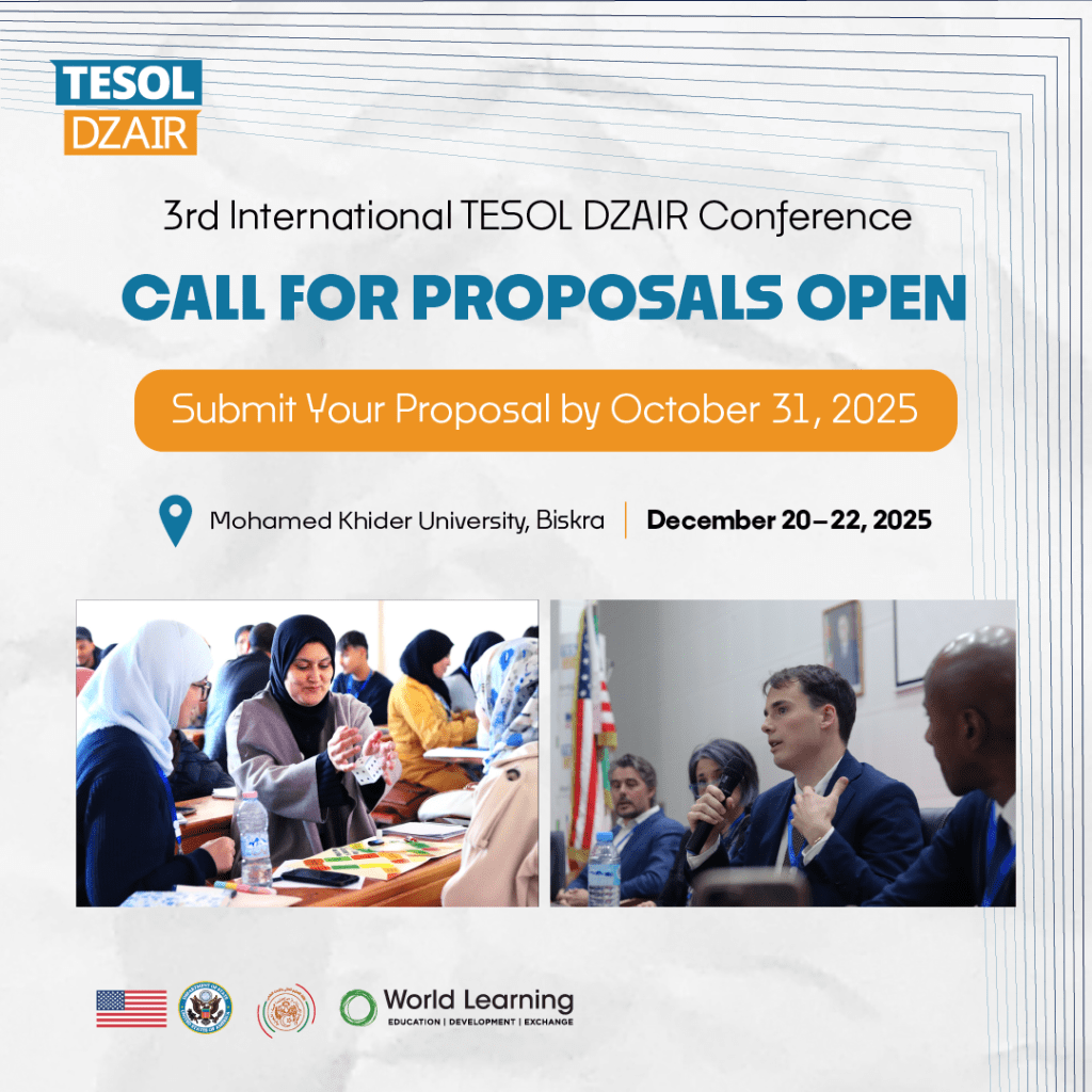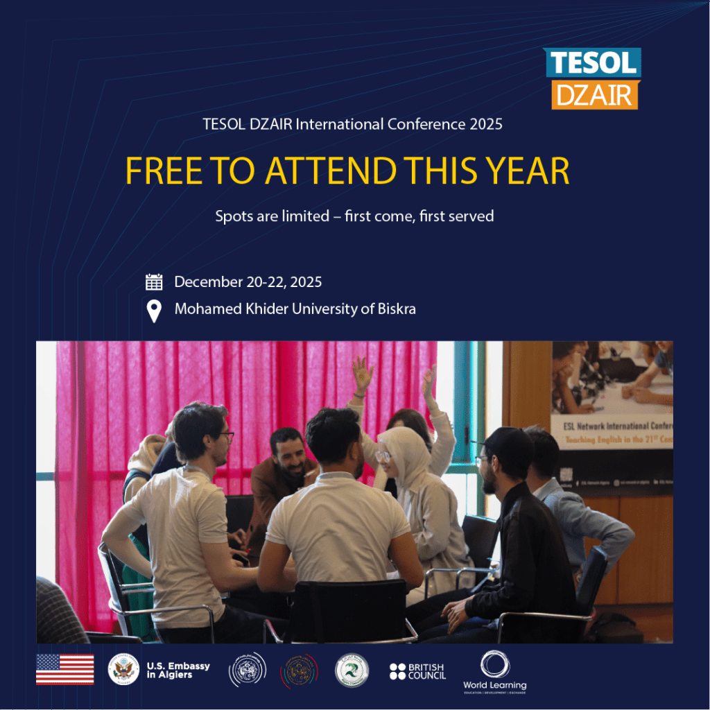 Our Regional Workshops offer in-person training opportunities for teachers across Algeria, facilitated by expert trainers and members of TESOL Dzair. These workshops aim to provide high-quality, hands-on training utilizing the latest teaching methods to enhance skills and benefit the education community. Participants will have the opportunity to network, share knowledge, and improve their skills in a supportive and collaborative environment.
